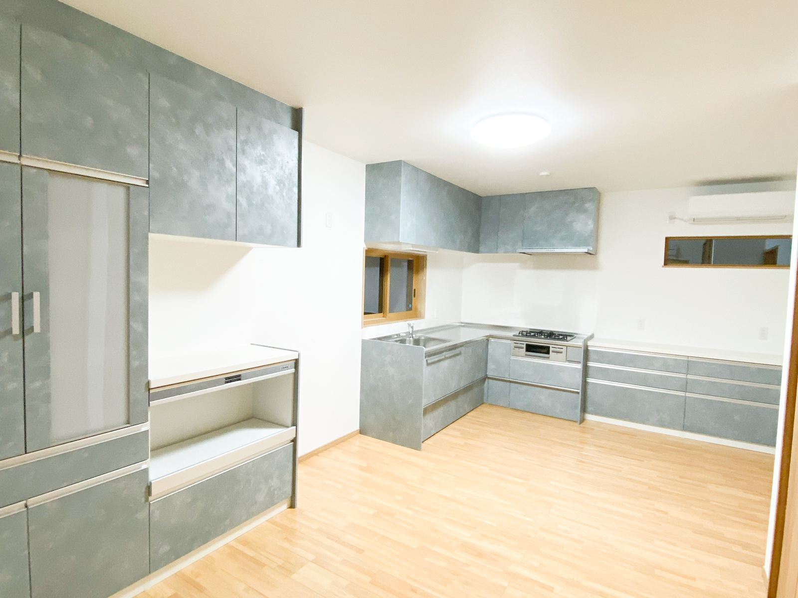 収納力のあるカップボードも設置し日常生活で使いやすい設計となっています。